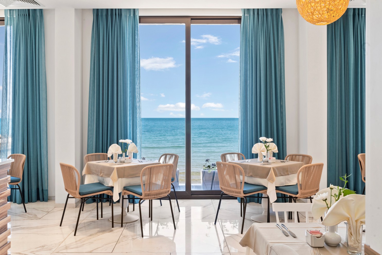 Отпуснете се в елегантно проектирани стаи, вдъхновени от цветовете на морското дъно и се насладете на невероятна гледка към ослепителните води на Черно море. Споделете изгреви и залези с любимите си хора. Отдайте се на спокойствието и избягайте от ежедневната реалност! Елегантно и луксозно обзаведени, двойните стаи осигуряват всички съвременни удобства за Вашата незабравима лятна ваканция. Настаняването е на база олинклузив.