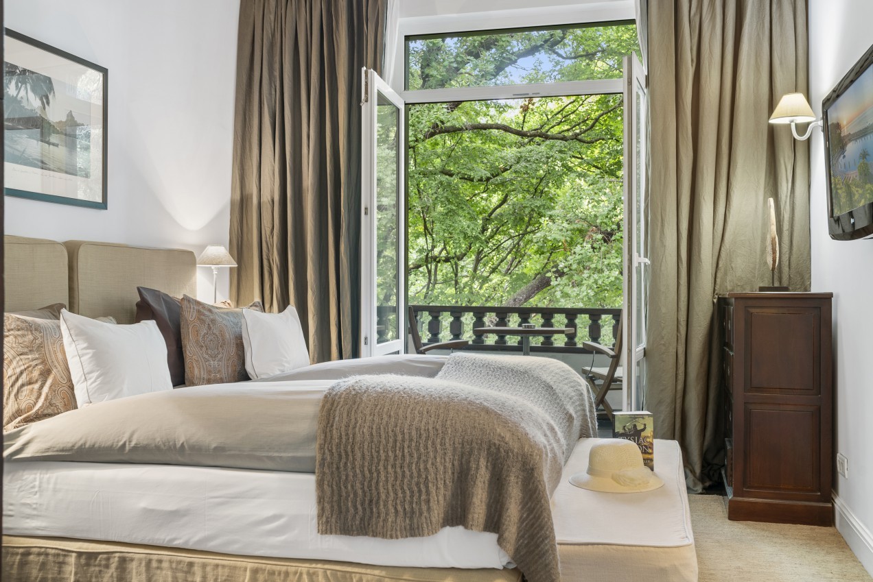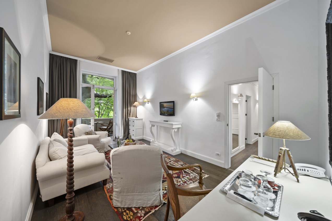 Стилно обзаведени, състоящи се от дневна и самостоятелна спалня, апартаментите предлагат топла и функционална обстановка за почивка. Спалнята се отваря към красива тераса, където можете да се насладите на живописна гледка към парка и да усетите свежия боров полъх.